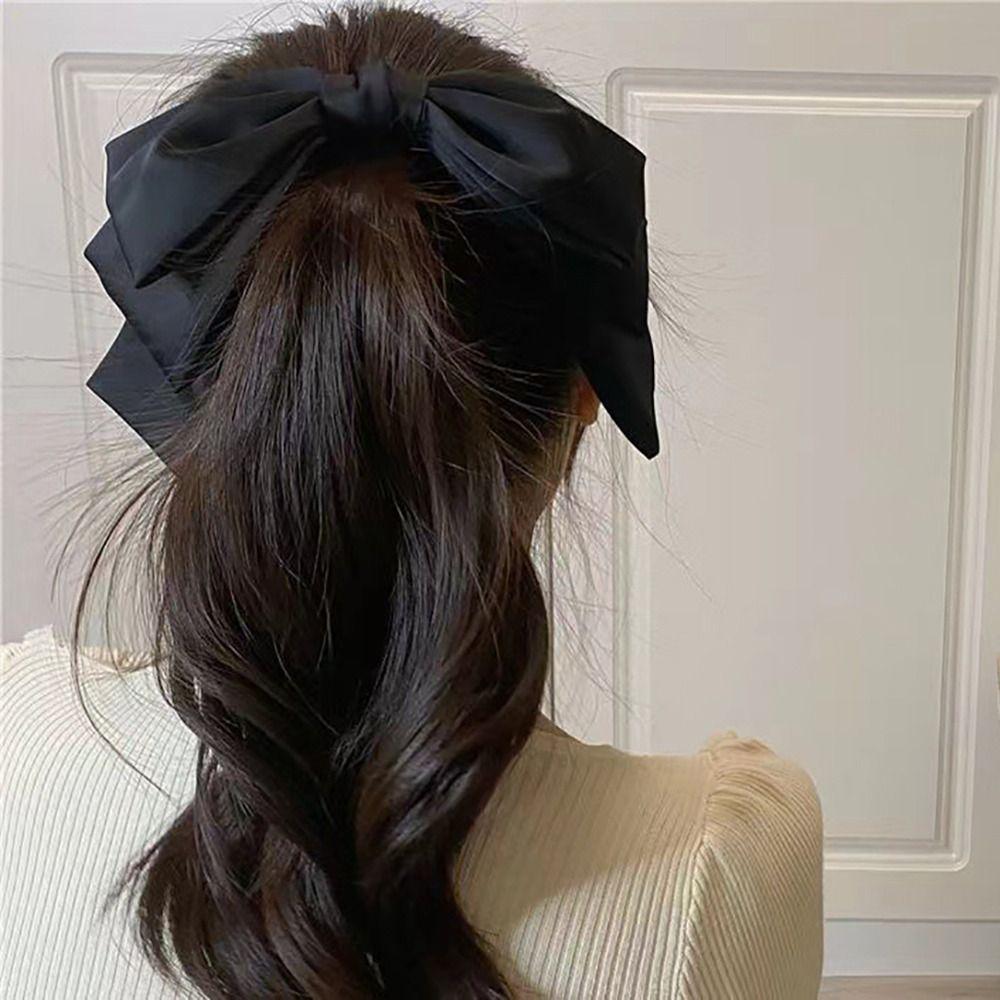 1Pcs Solid Pink Black Hair Clip Big Bow Satin Hair Pin New Hair Bows for Hair Accessories