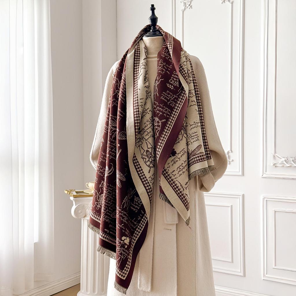 Новый Роскошный Двусторонний Шарф из Имитации Кашемира - Ультрамягкий Женский Зимний Утепленный Жаккардовый Шарф-Шаль с Стильными Узорами