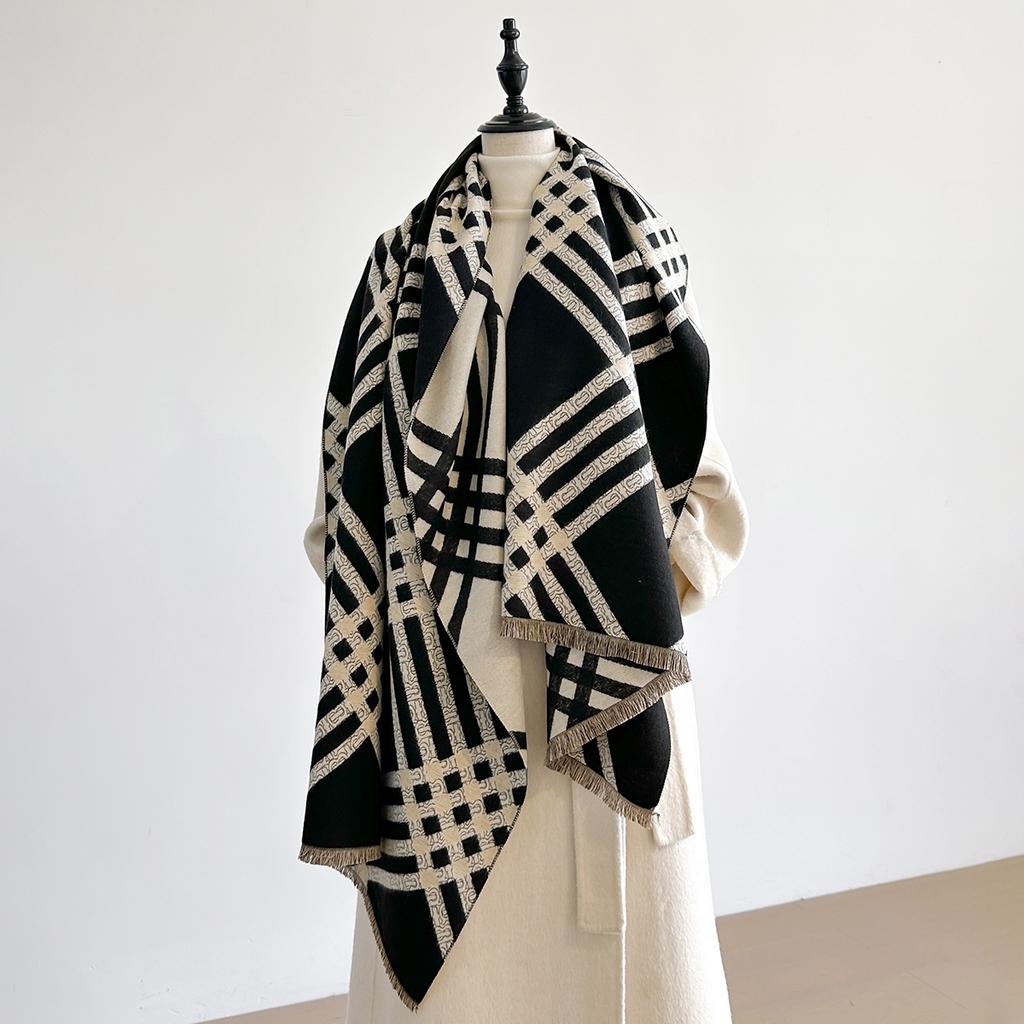 Новый бренд Элегантный двухсторонний шарф Мягкий Теплый Бахрома Пашмина Шаль Осень и Зима Уличный Защита от Холода Ветрозащитный Плед