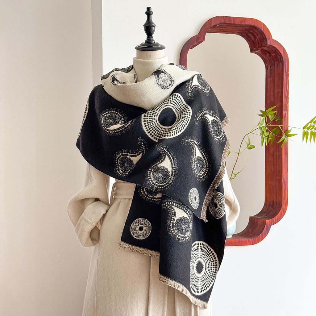 Новейший дизайн Зимние двухсторонние жаккардовые кашемировые шарфы Высокое качество Женский утолщенный платок-пашмина Женский шерстяной шарф