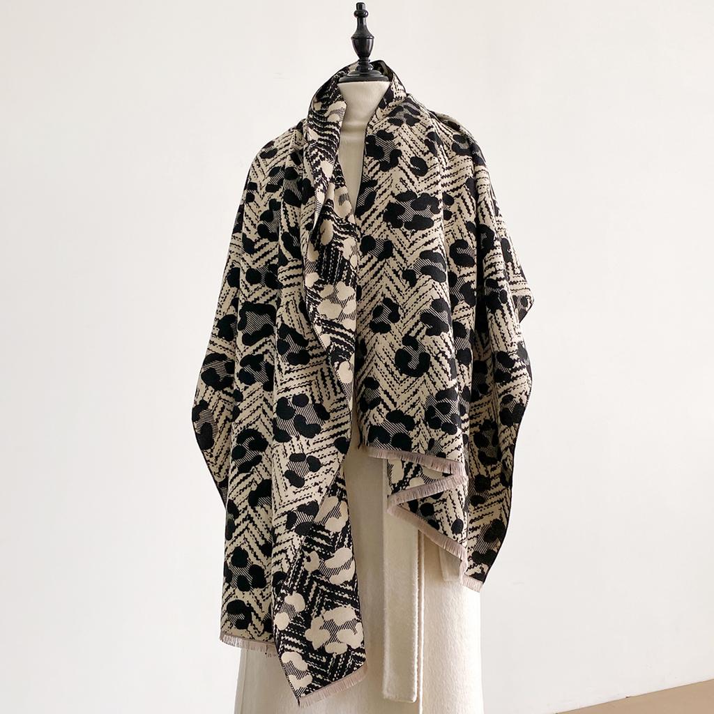 New Luxury Winter Cashmere Retro Leopard Print Scarf Women Warm Pashmina Poncho Scarves Fashion Shawl Thick Foulard Bufanda