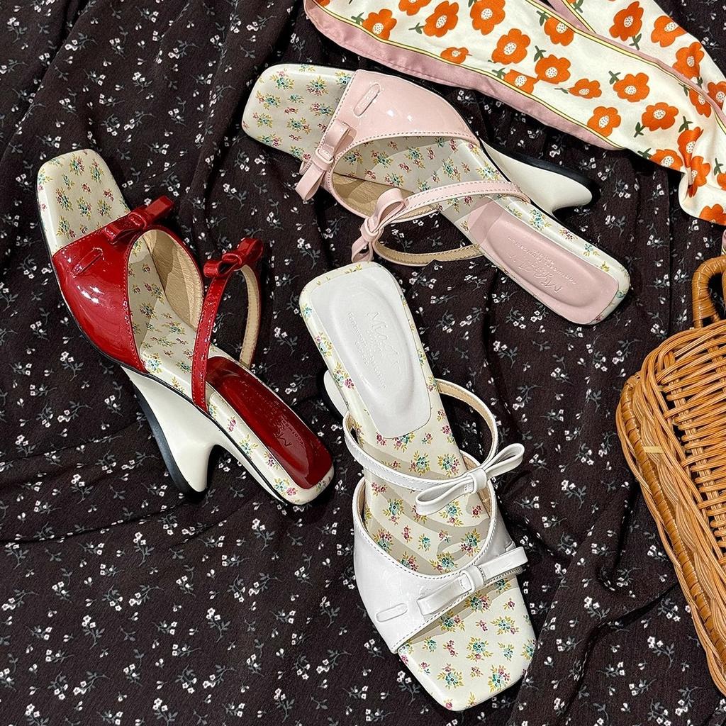 "Ziyan" small floral~ sweet wind thick heel sandals women's summer new bow word with wedge heel sandals