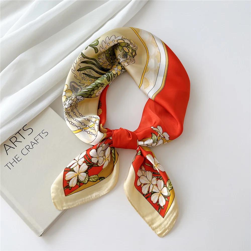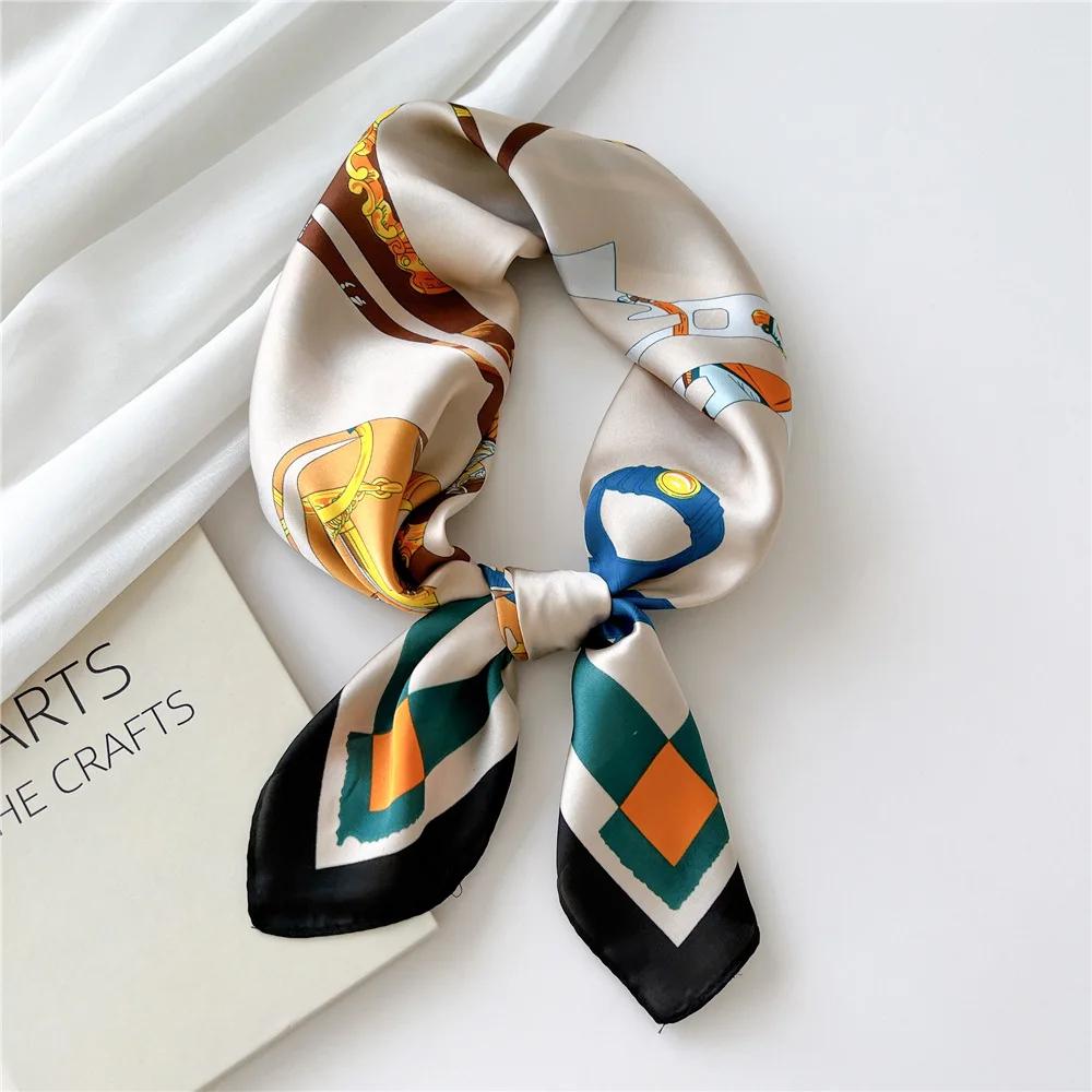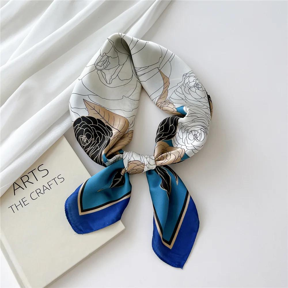 Женские шейные платки Квадратный платок Милые платки-хиджабы 70 см Маленькие шали Шелковый атласный шейный платок Повязка для волос Галстук-шарф для дам