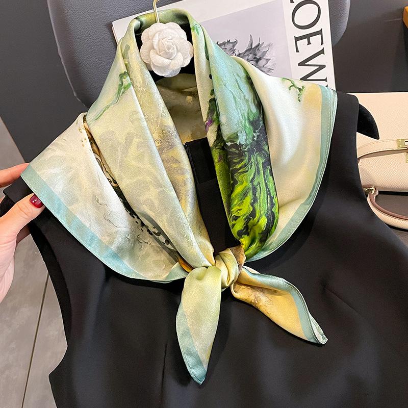 Бренд 100% Натуральный Шелк Квадратный Шарф Женский Шейный Платок Шаль Женский Шейный Платок Повязка на Голову Бандана Женский Фуляр Хиджаб Косынка