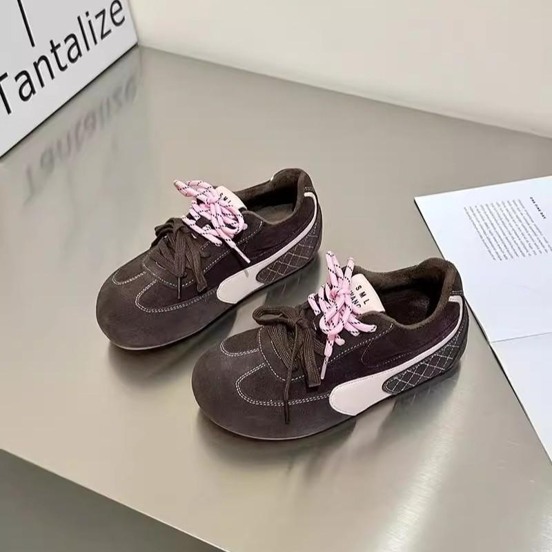 Легкая мягкая подошва~ бархатные уродливо-милые немецкие тренировочные туфли женские 2025 зима новые двухцветные шнурки повседневные туфли Форреста Гампа