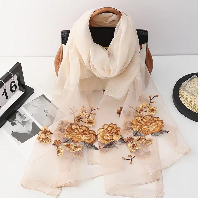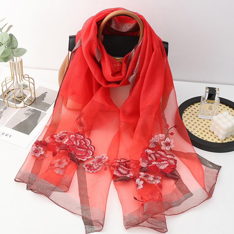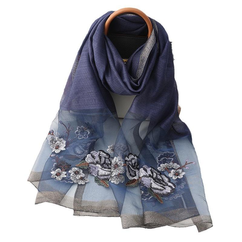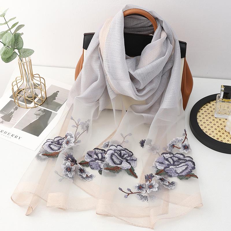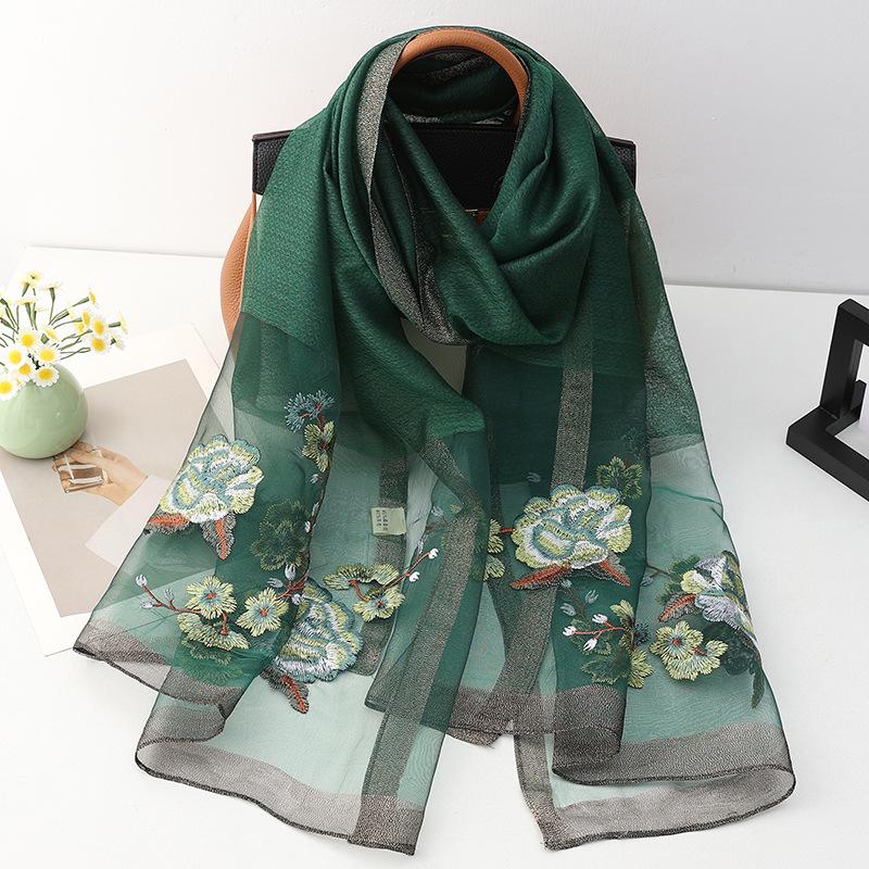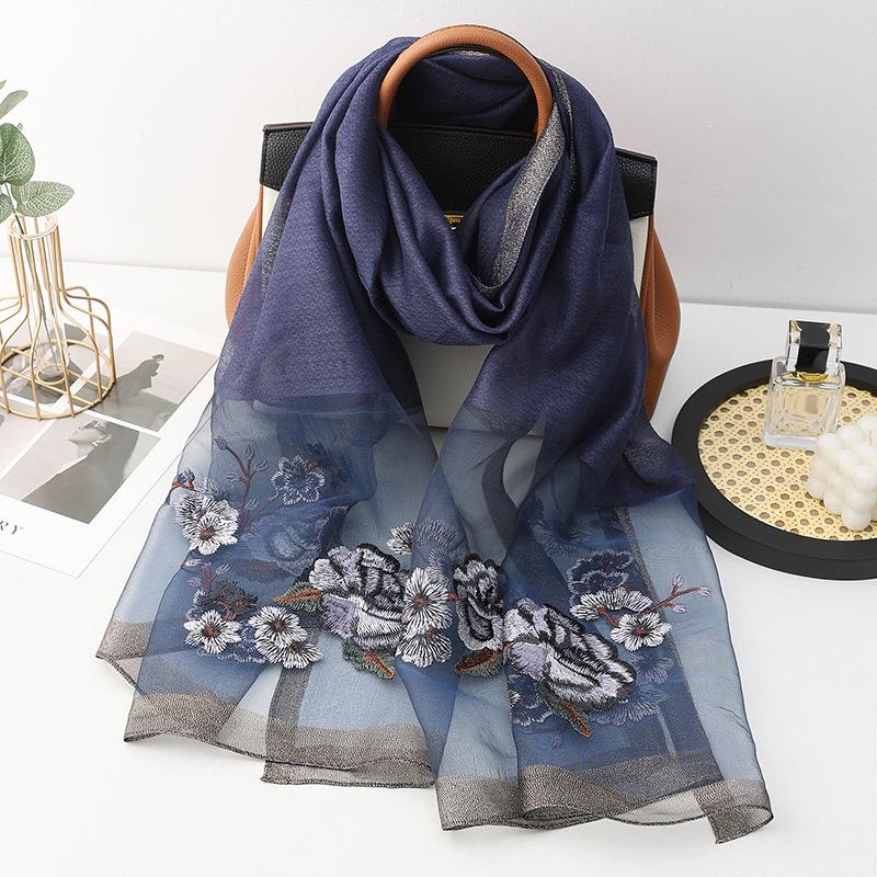 Шелково-шерстяной шарф на четыре сезона женский хиджаб пашмина шали накидка бандана одеяло цветочная пашмина вышивка шарфы фулард женский