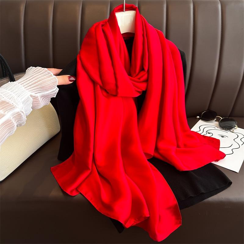 Однотонный базовый дизайн 100% шелковистый шарф для женщин 180x90см шаль накидка роскошный женский хиджаб повязка на голову фуляр пляжные столы