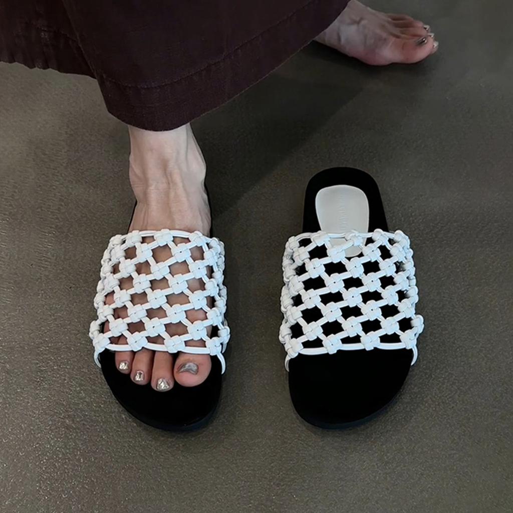 Версия из мягкой кожи~ плетеные вручную рыболовные сети полые пляжные туфли на толстой подошве женские универсальные повседневные с круглым носком крутые шлепанцы