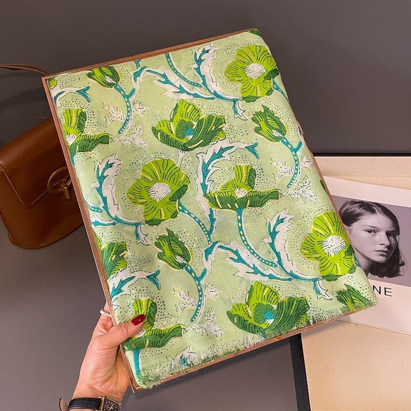 Spain Fashion Lotus Floral Fringe Viscose Shawl Scarf Lady High Quality Wrap Pashmina Stole Bufandas Muslim Hijab 180*90Cm