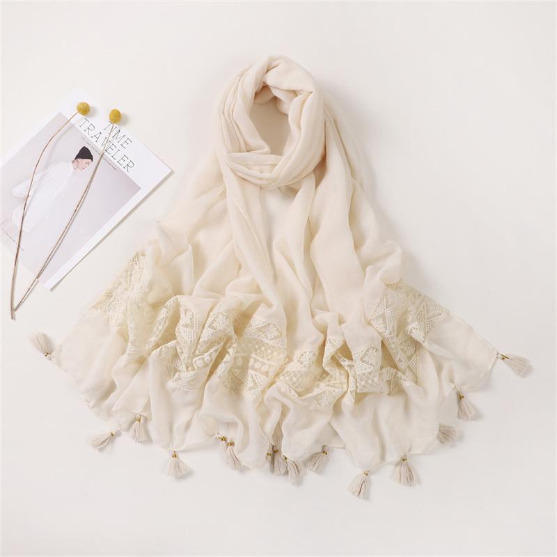 Модный осенний шарф из хлопка и вискозы с кружевной цветочной лоскутной отделкой, шали, обертывание, повязка для шеи, резинка для волос, пляжный хиджаб, головной убор, женский фуляр, снуд