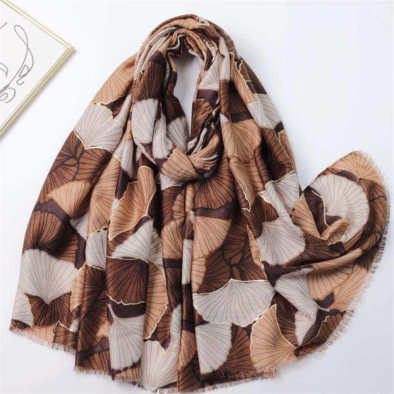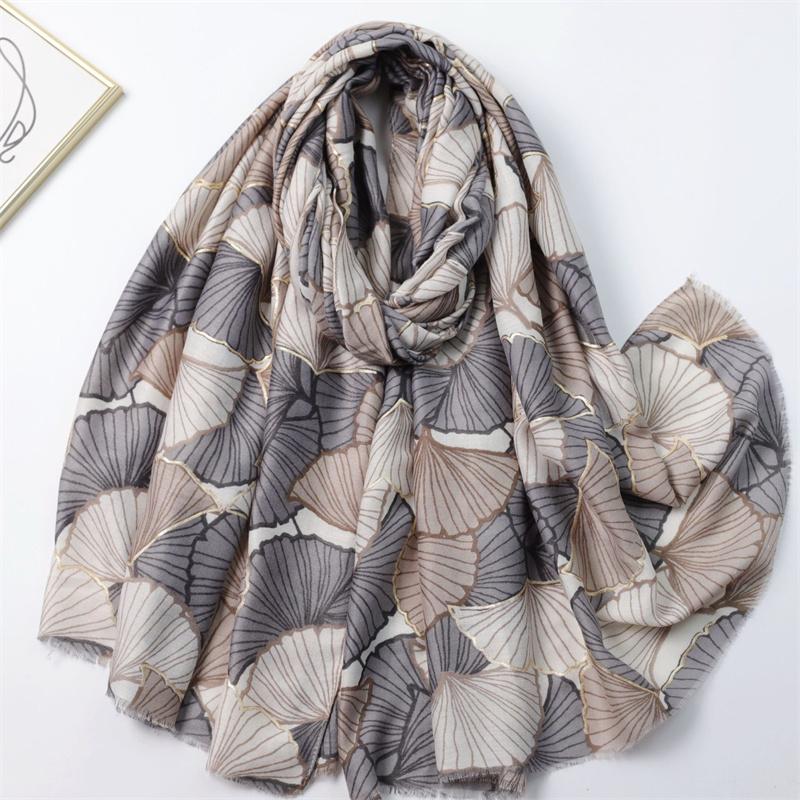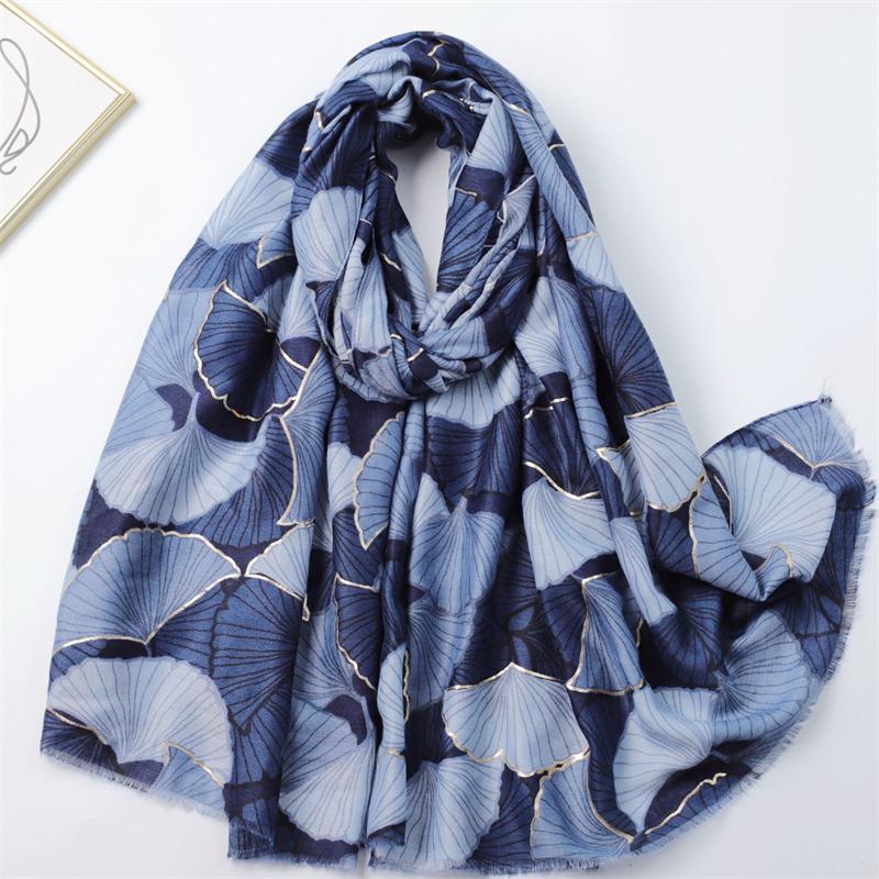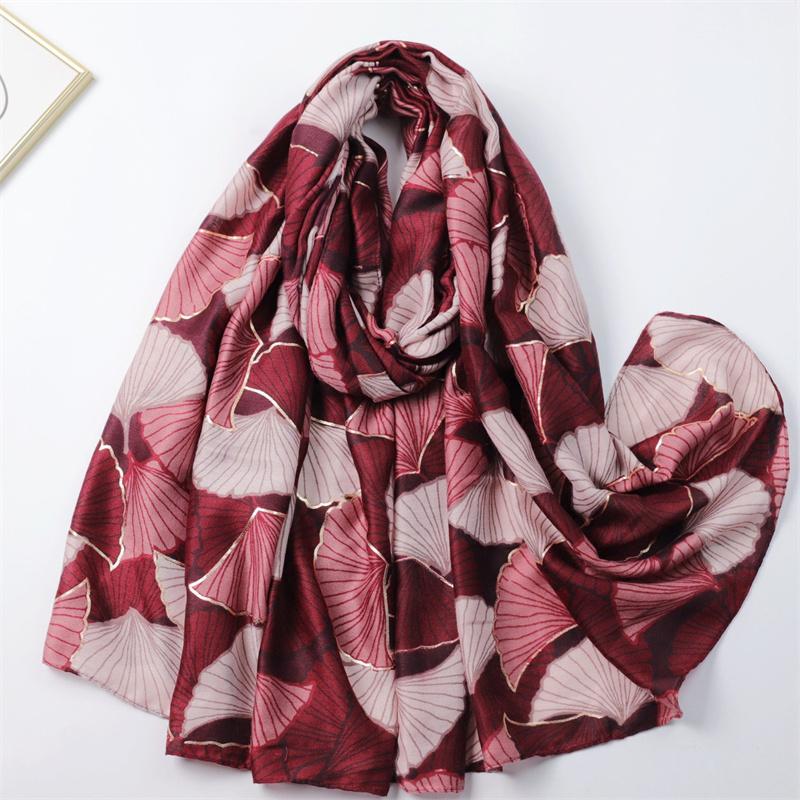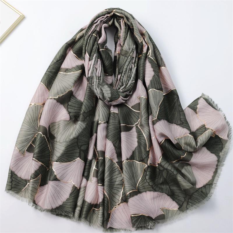 Winter Lurex Glitter Ginkgo Leaf Floral Viscose Soft Scarf Chic Cotton Shawl Women Perfect for Travel & Casual Muslim Hijab