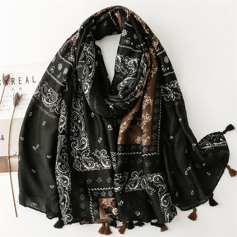 Пейсли Цветочный Кисточка Хлопковый Шарф Дышащий Вискозный Платок Зимний Повседневный Солнцезащитный Дорожные Шарфы Женский Мусульманский Хиджаб Шаль