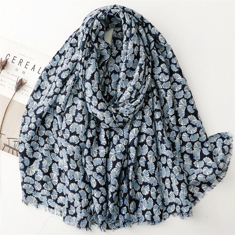 Модные Зимние Шали Шарфы в Горошек Гинкго Цветочные с Бахромой Вискозные Женские Высококачественный Принт Мягкая Пашмина Стола Мусульманский Хиджаб 180*90 см