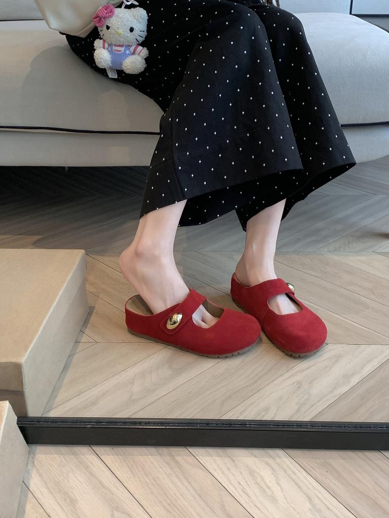 Grape mother studiolee height increased by 5cm~ small golden bean round head soft cute Mary Jane Boken half slippers female summer