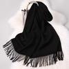 Женский шарф из 100% шерсти, однотонные шали, накидки для дам, длинный теплый шарф-пашмина с кисточками, кашемировые шарфы, зимний фуляр для женщин