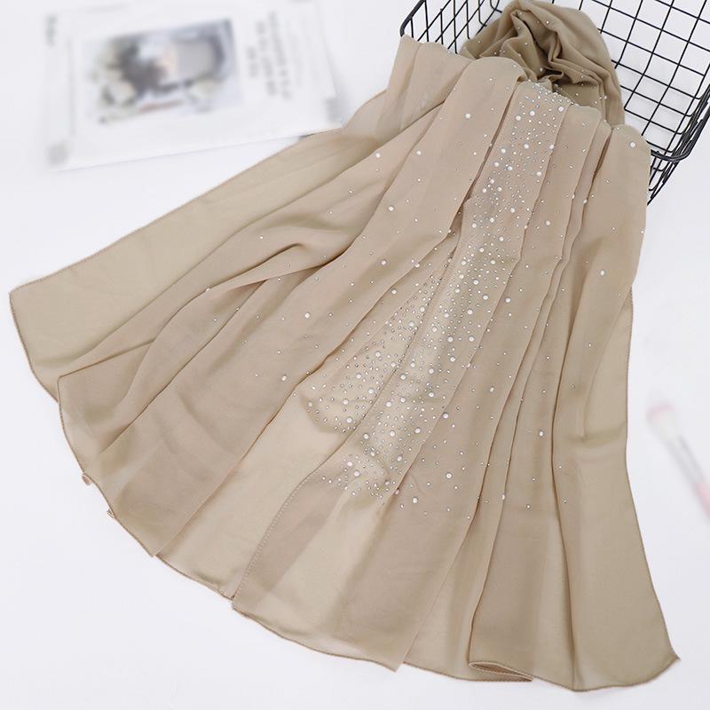 Женский мусульманский однотонный шифоновый шарф-хиджаб с жемчугом, шаль со стразами, повязка на голову, фуляр, хиджабы, шарфы, новый