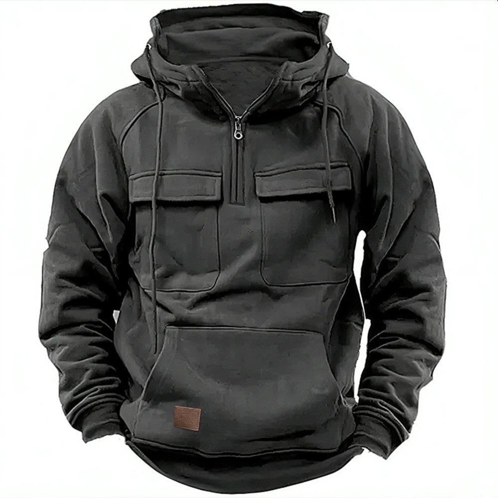 Мужская толстовка с капюшоном на молнии с несколькими карманами - повседневная спортивная толстовка на весну/осень