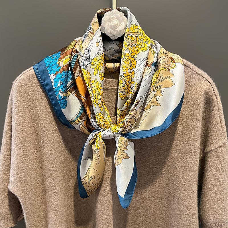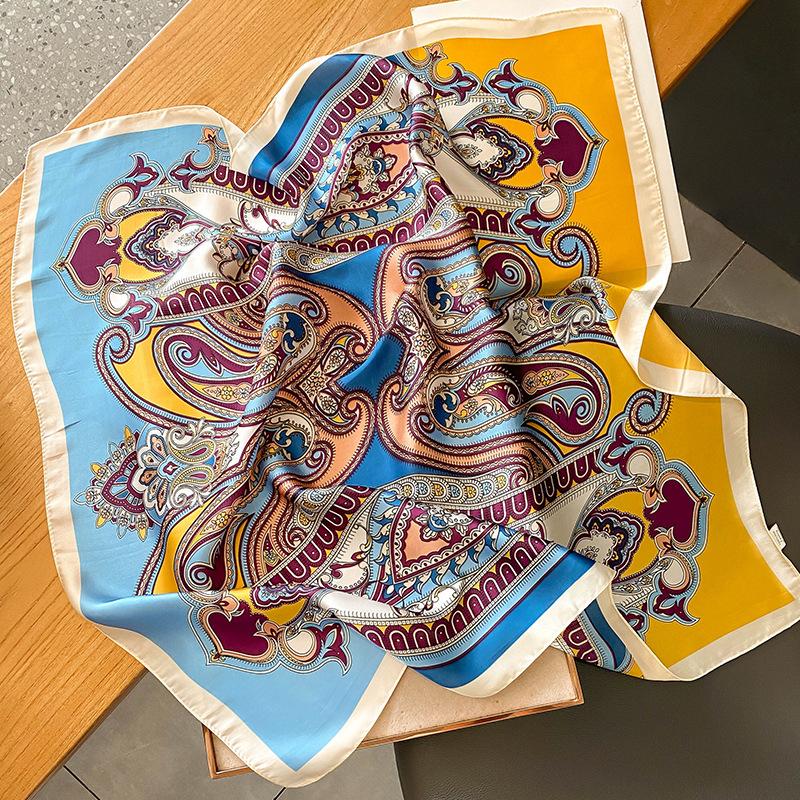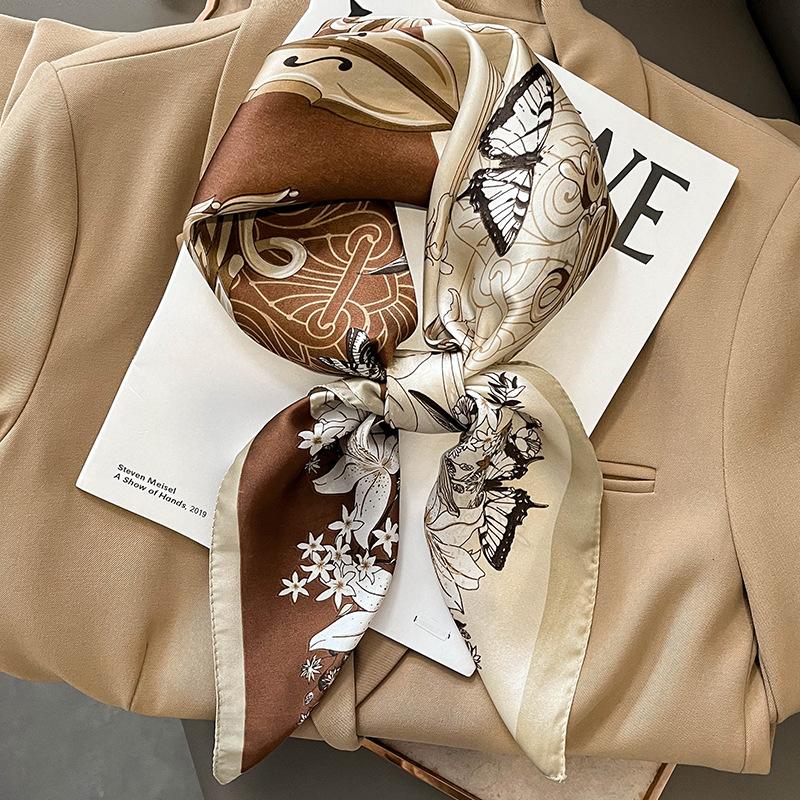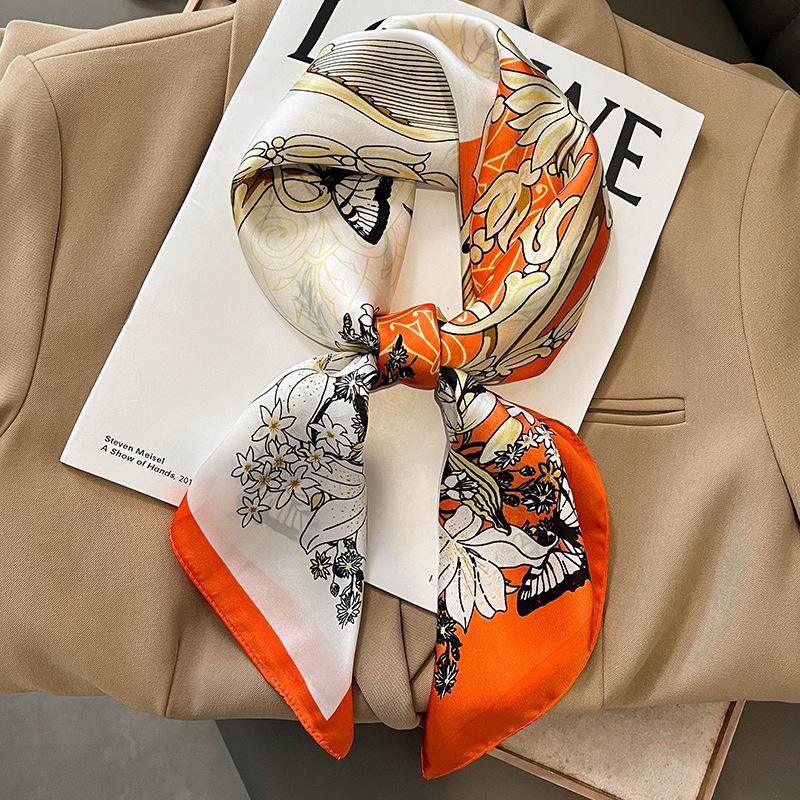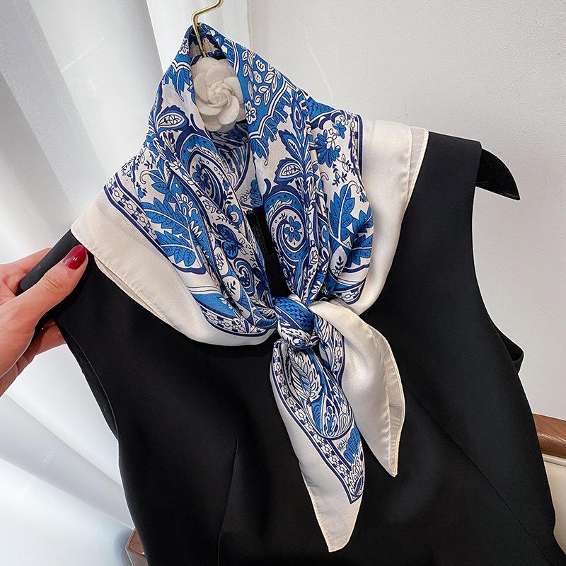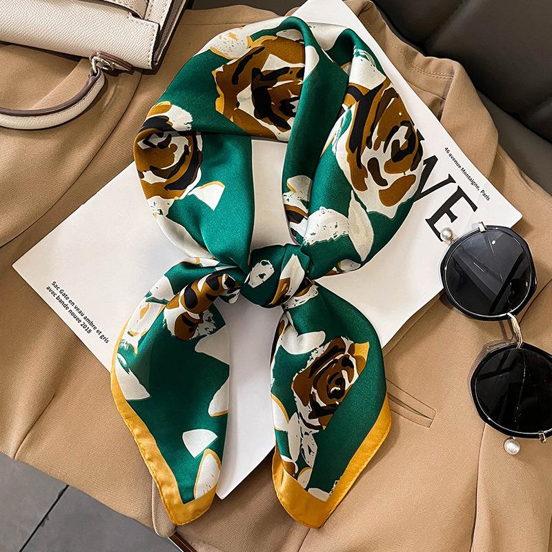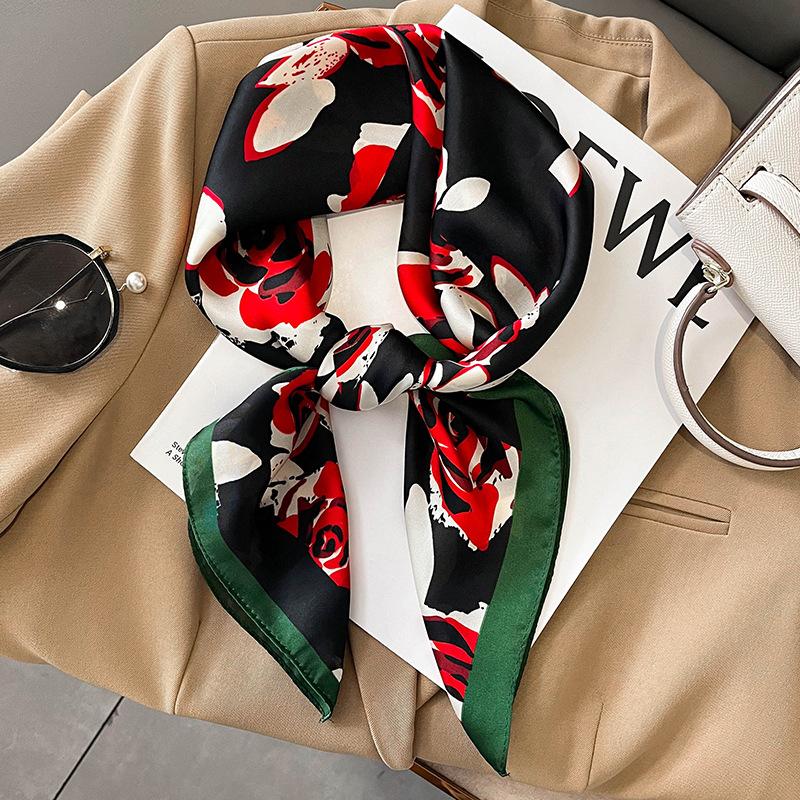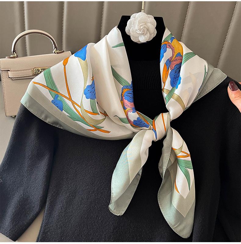 Элегантный цветочный шарф для леди Модный квадратный шелковый шейный платок бандана фуляр мягкие повязки для волос женские новый буфанда