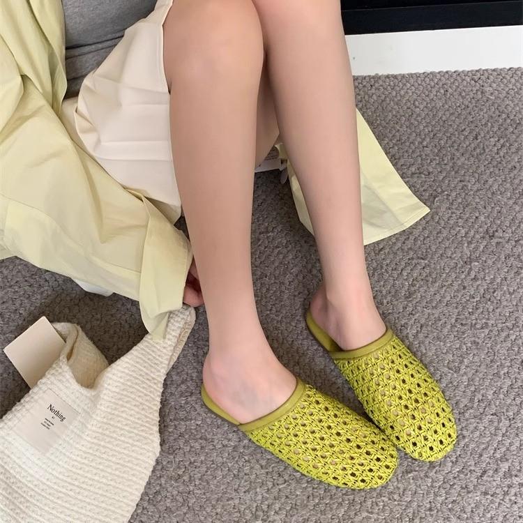 Модная верхняя одежда французская полая дышащая плетеная сумка голова тапочки женские 2025 лето новая плоская подошва с юбкой сандалии
