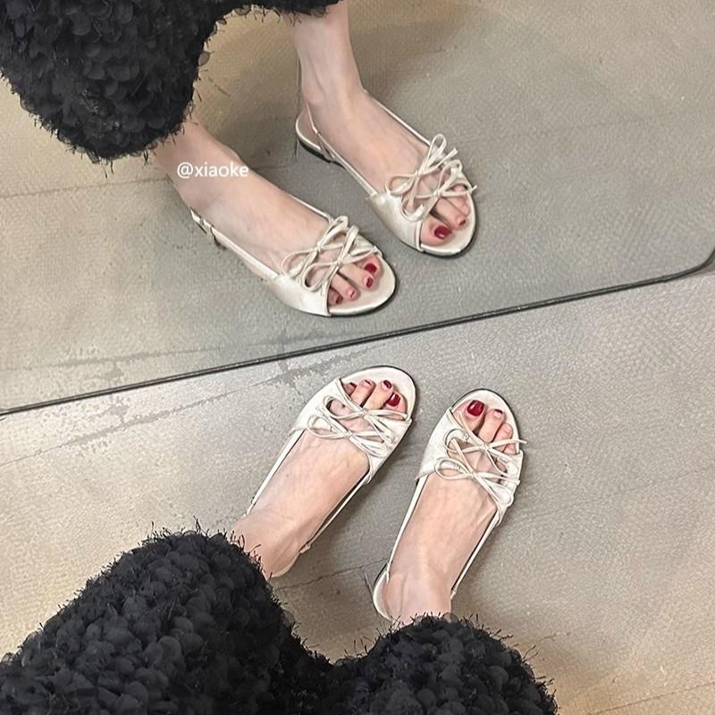 2025 лето новые атласные сандалии с бантом с открытым носком на плоской подошве с мягкой подошвой, с круглым носком, для улицы, на плоском каблуке, крутые шлепанцы