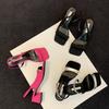 Soft leather version~ retro bag head color matching sandals with thick heels, empty square head single shoes, small fragrant temperament women's shoes