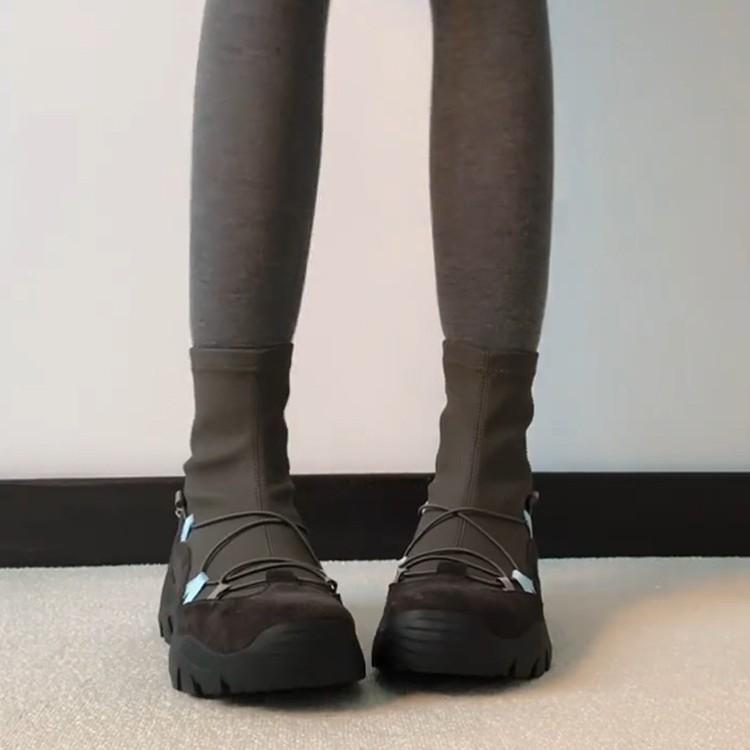 Soft leather version~ retro thick-soled height-increasing and thin casual Martin boots women's niche design sense splicing elastic thin boots