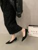 Французские черные туфли на высоком каблуке, остроносые, одинарные, женская обувь 2025, новинка, осень и зима, верхняя одежда, плюшевые, для通勤, пушистые туфли