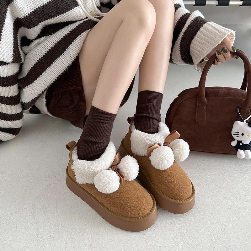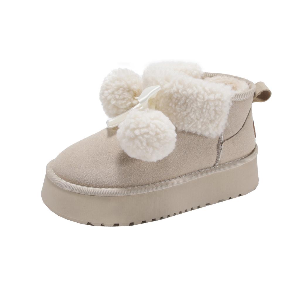 Симпатичные зимние ботинки с толстой подошвой и встроенным мехом, женские, новинка 2025 года, теплые, с начесом, из утолщенного хлопка