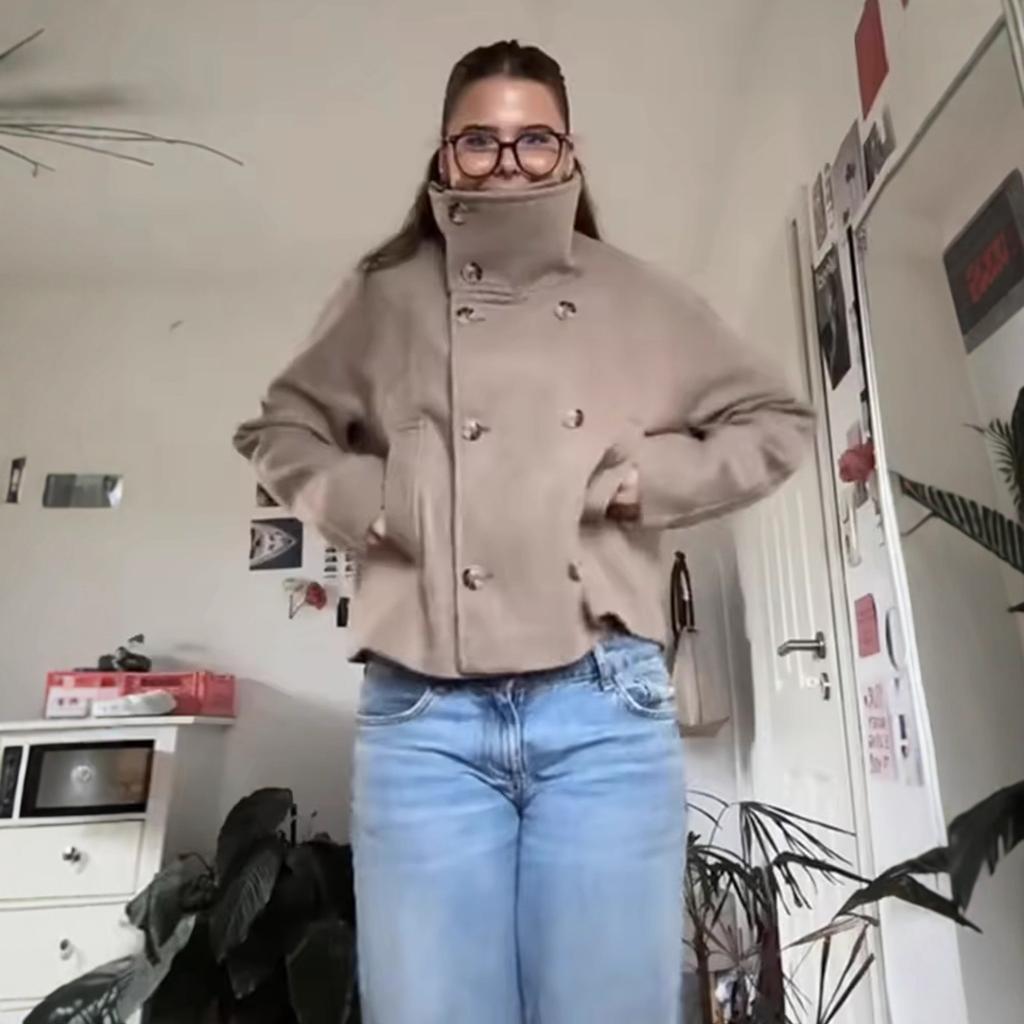 Женская одежда Двубортный Однотонный Шерстяной материал Лацкан Свободный Шерстяной Короткий