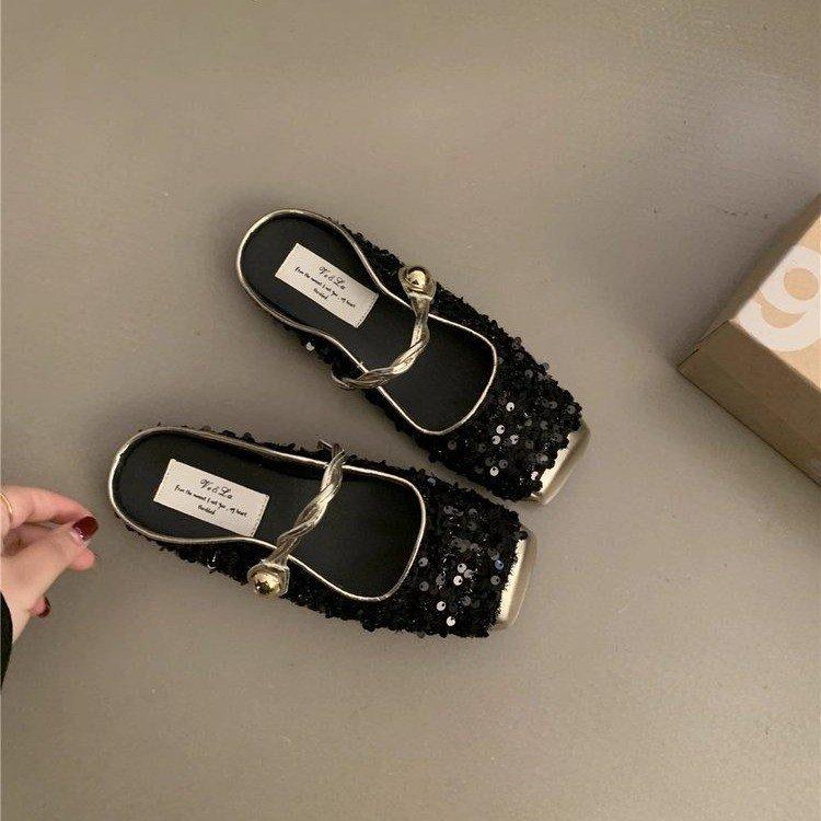Французские расшитые пайетками серебристые туфли-мюли женские 2025 весна и лето Сяосянфэн корейская версия темперамент Мэри Джейн одинарные туфли женские