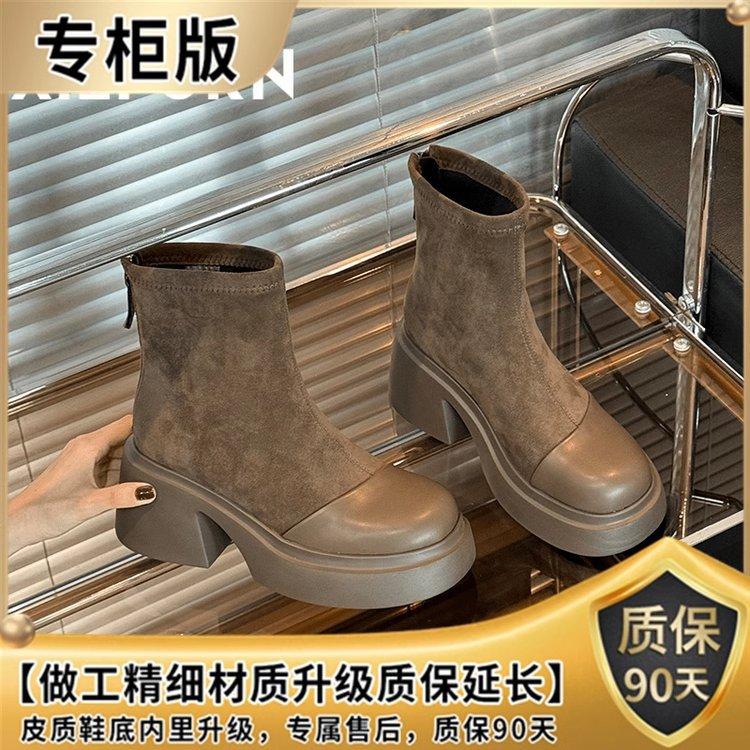 Женские узкие ботинки Мартин 2025 осень новые ретро на толстой подошве универсальные короткие ботинки женские увеличивающие рост и стройнящие маленькие ботинки