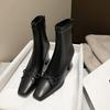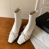 Ботильоны-чулки эластичные с бантом 2025 Осень Новые Бежевые Ботильоны-чулки Квадратный носок Задняя молния Высокий каблук Короткие ботильоны Женские