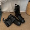 Популярные черные женские ботинки на высокой платформе 2025 новый летний универсальный балетный стиль увеличивающие рост короткие ботинки