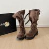 Модные ковбойские рыцарские сапоги женские 2025 весна и лето новые коричневые ретро с ремешком и пряжкой на шнуровке британские женские сапоги