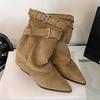 Белые ботильоны на толстом высоком каблуке с острым носком в британском стиле женские 2025 новая осень с юбкой увеличивающие рост и стройнящие сапоги-трубы
