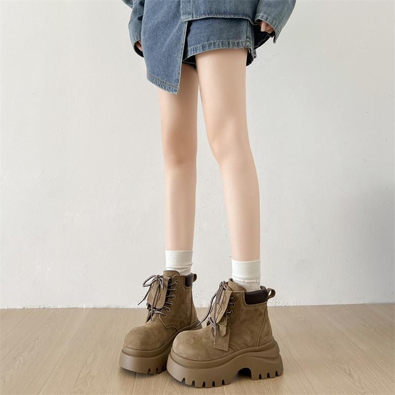 Ботинки Мартин на толстой подошве с увеличением высоты Queen Fan в стиле ретро, женские, новые осенние 2025 года, тонкие, универсальные, короткие ботинки