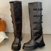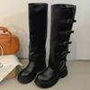 Черный британский стиль, но ботфорты на толстом каблуке и платформе до колена, женские 2025, новые осенние, увеличивающие рост и стройнящие ретро-ботинки