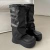 Черные ретро премиальные ботинки на толстой подошве с увеличением роста женские 2025 новая летняя универсальная и тонкая брючная обувь рыцарские ботинки