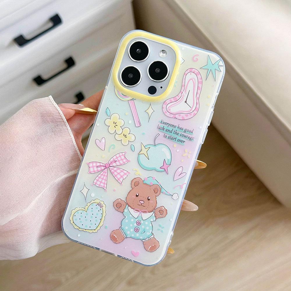 New Color blocked Bear Bow Suitable for Apple 16 Mobile Phone Case Small Fresh 15PROMAX Protective Case Korean 14