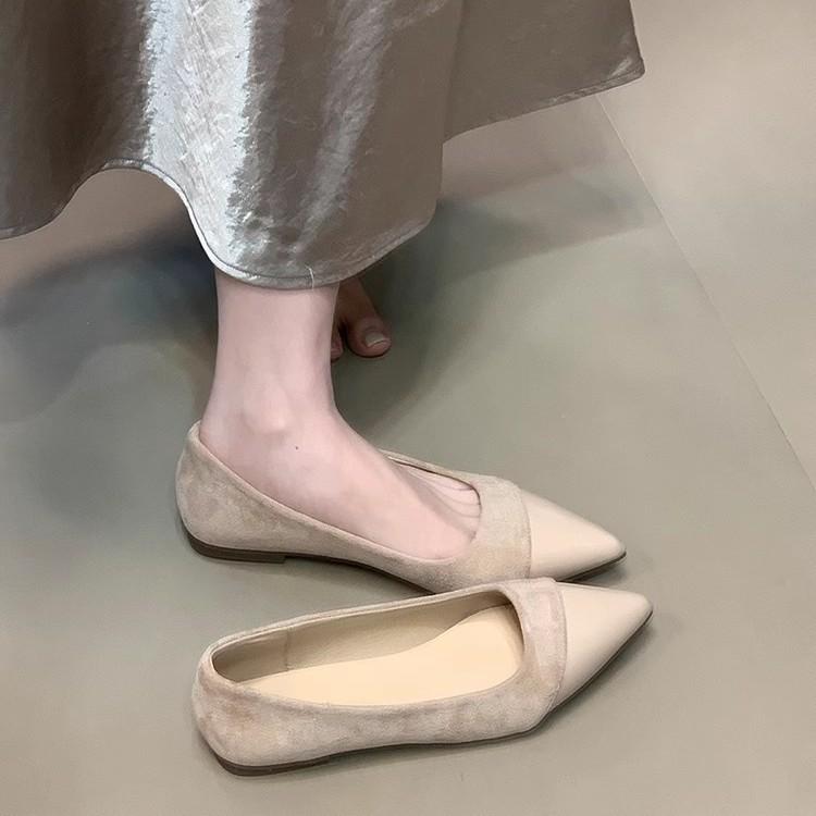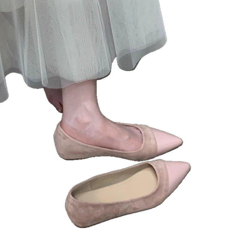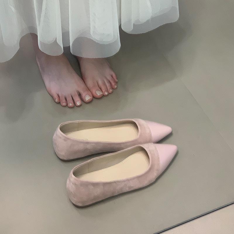 Весна и лето 2025 новые туфли на плоской подошве французские универсальные с острым носком с внутренней высотой подъема с юбкой с неглубоким вырезом комбинированные туфли для работы