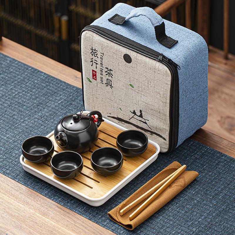 Дорожная сумка, керамический набор для кунг-фу чая, один чайник, четыре чашки, меламиновый поднос для чая, полный набор портативных деловых подарков, встреча