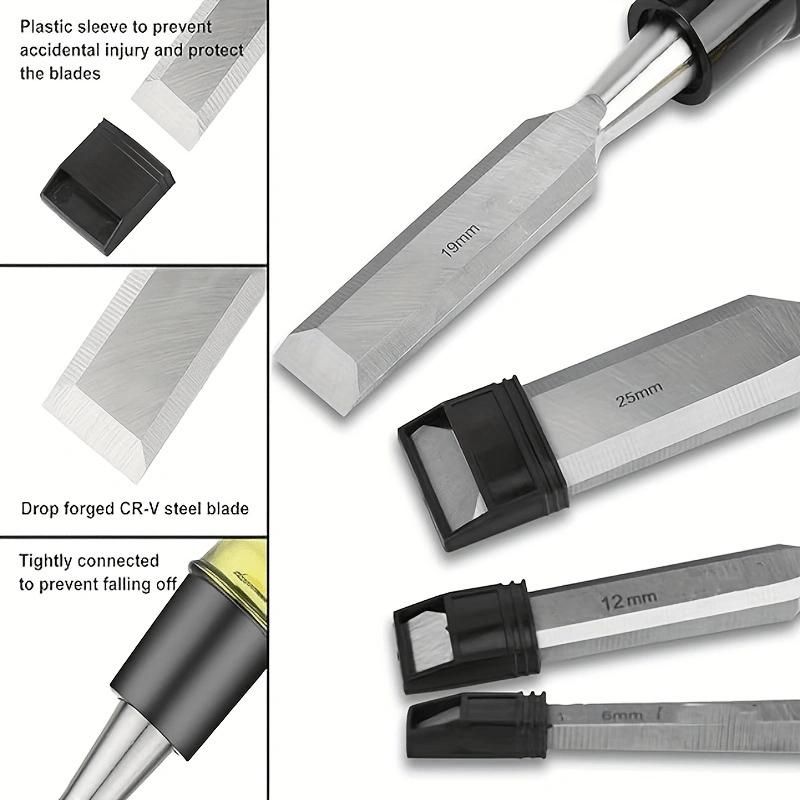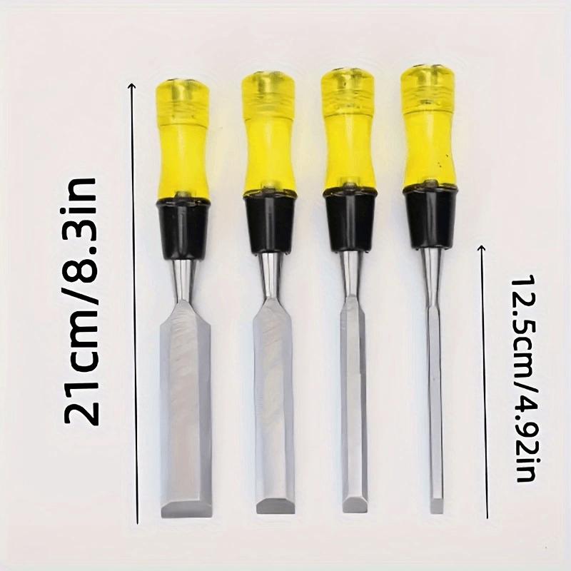 Набор из 4 стамесок по дереву для деревообработки, сталь CR-V, лезвие со скошенной кромкой, прочная ПВХ рукоятка высокой ударной прочности, ручной инструмент стамеска по дереву
