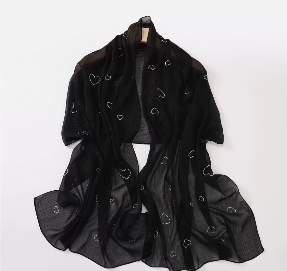 Новый мусульманский хиджаб из жатого шифона со стразами, блестящий шарф для женщин, однотонный платок, обертывания, исламская повязка на голову, тюрбан
