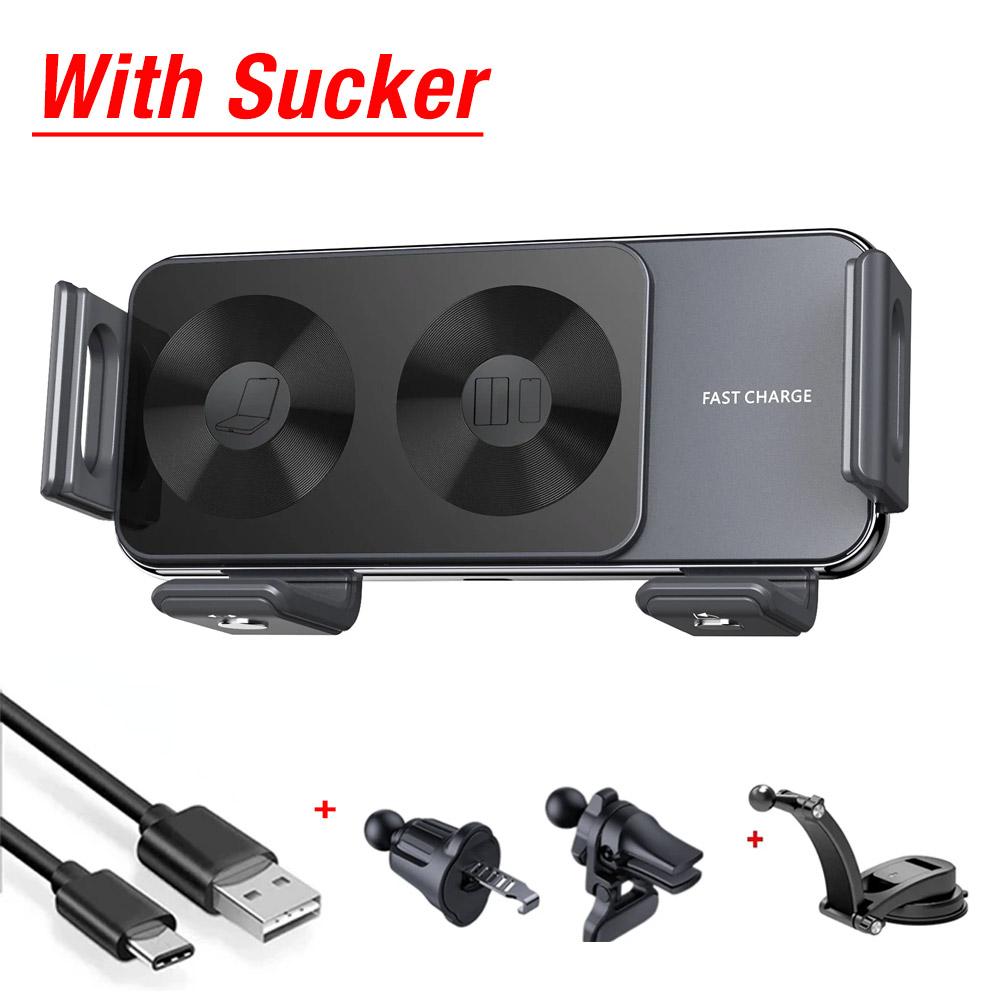 Беспроводное автомобильное зарядное устройство с двойной катушкой, держатель для телефона с креплением на воздуховод и приборную панель, подставка для Samsung Z Fold/Flip 6/5/4/3/2 S25 S24, быстрая зарядка