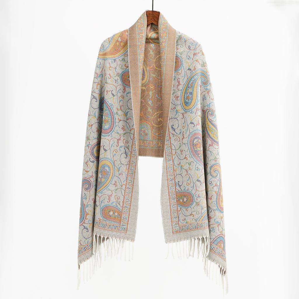 Роскошный Зимний Теплый Толстый Женский Шарф Жаккардовый Пейсли Хиджаб Фуляр Кашемировая Шаль с Кисточками Накидка Пашмина Мусульманское Одеяло