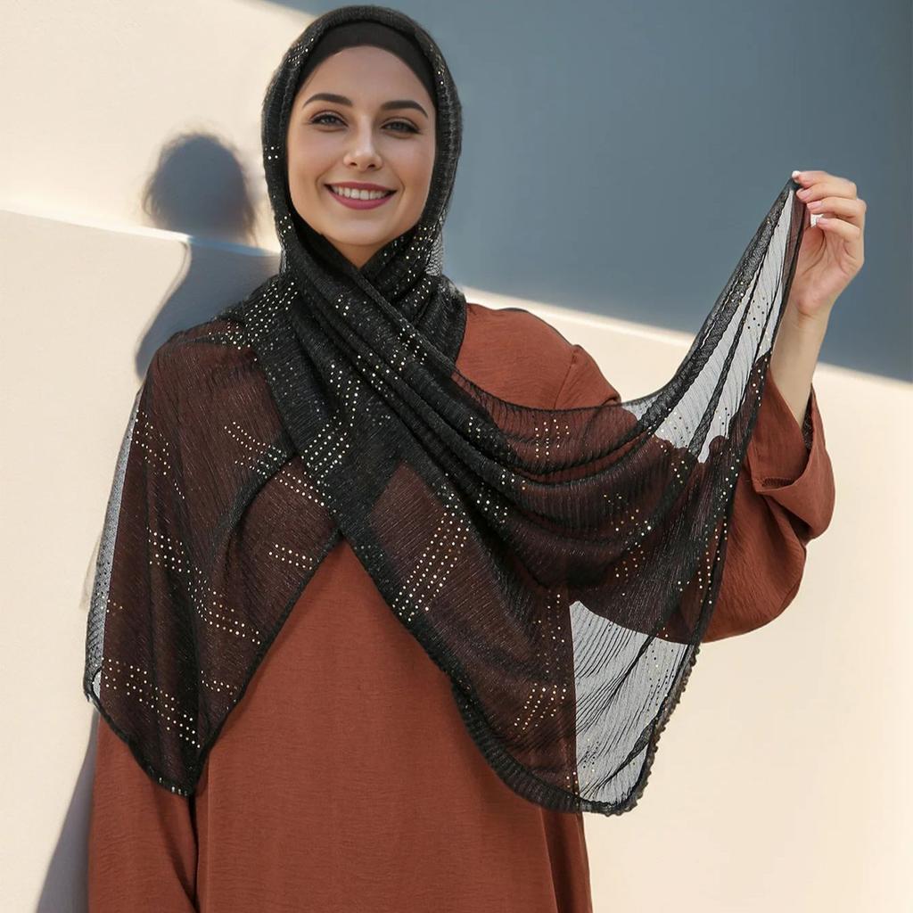 Блестящие женские хиджабы со стразами, исламский длинный платок-шаль с пайетками, женский хиджаб с полной накидкой, простой мусульманский головной платок