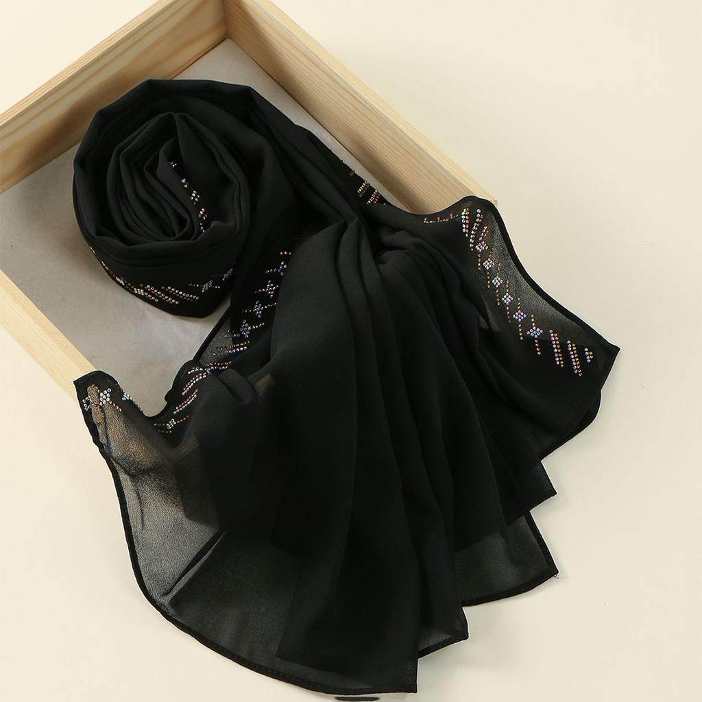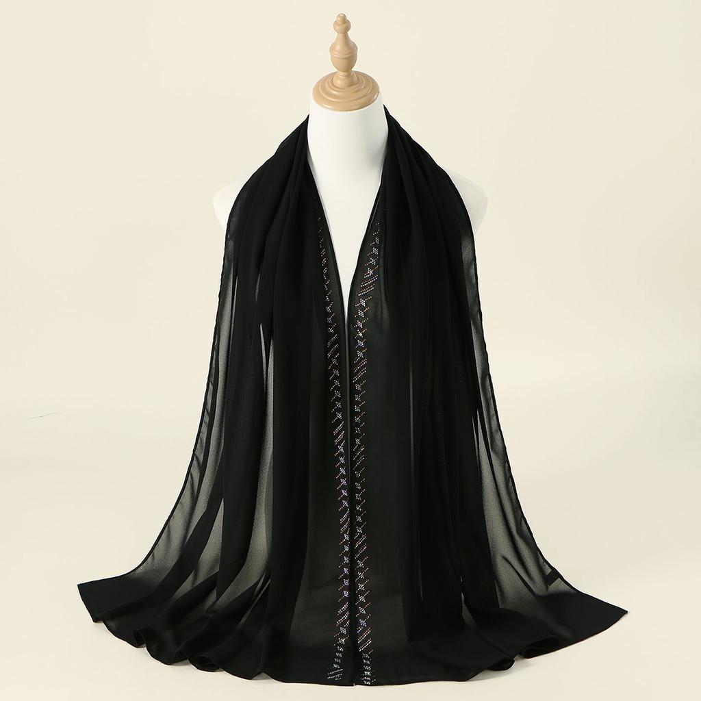 Новый шифоновый хиджаб-шарф со стразами для женщин, эластичная шаль, однотонная мусульманская повязка на голову, модный однотонный длинный шарф