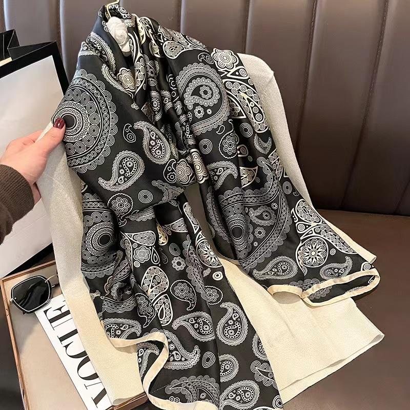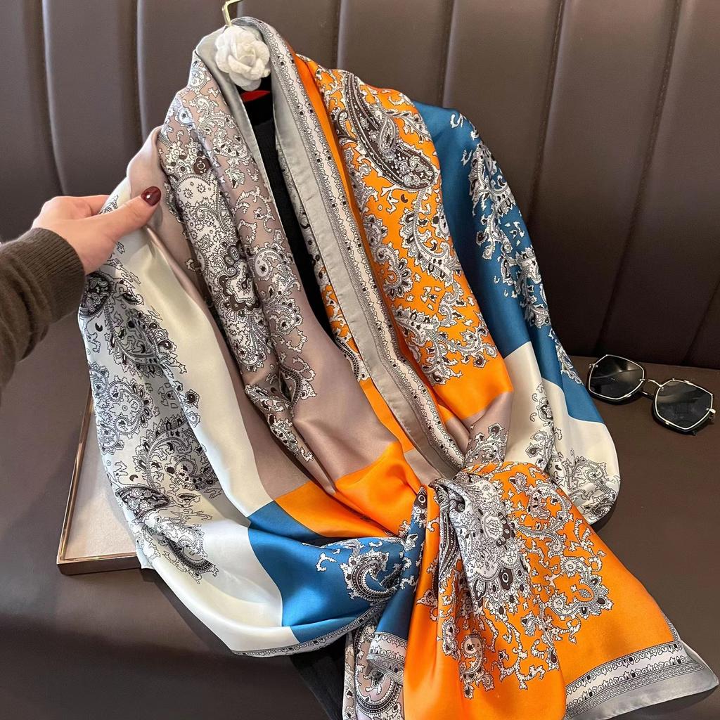 180*90см Роскошный бренд Весна Лето Осень Женская одежда Новая мода Цветовая гамма с принтом шелковый шарф леди популярная турба