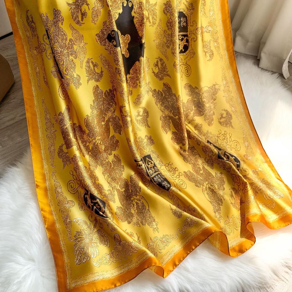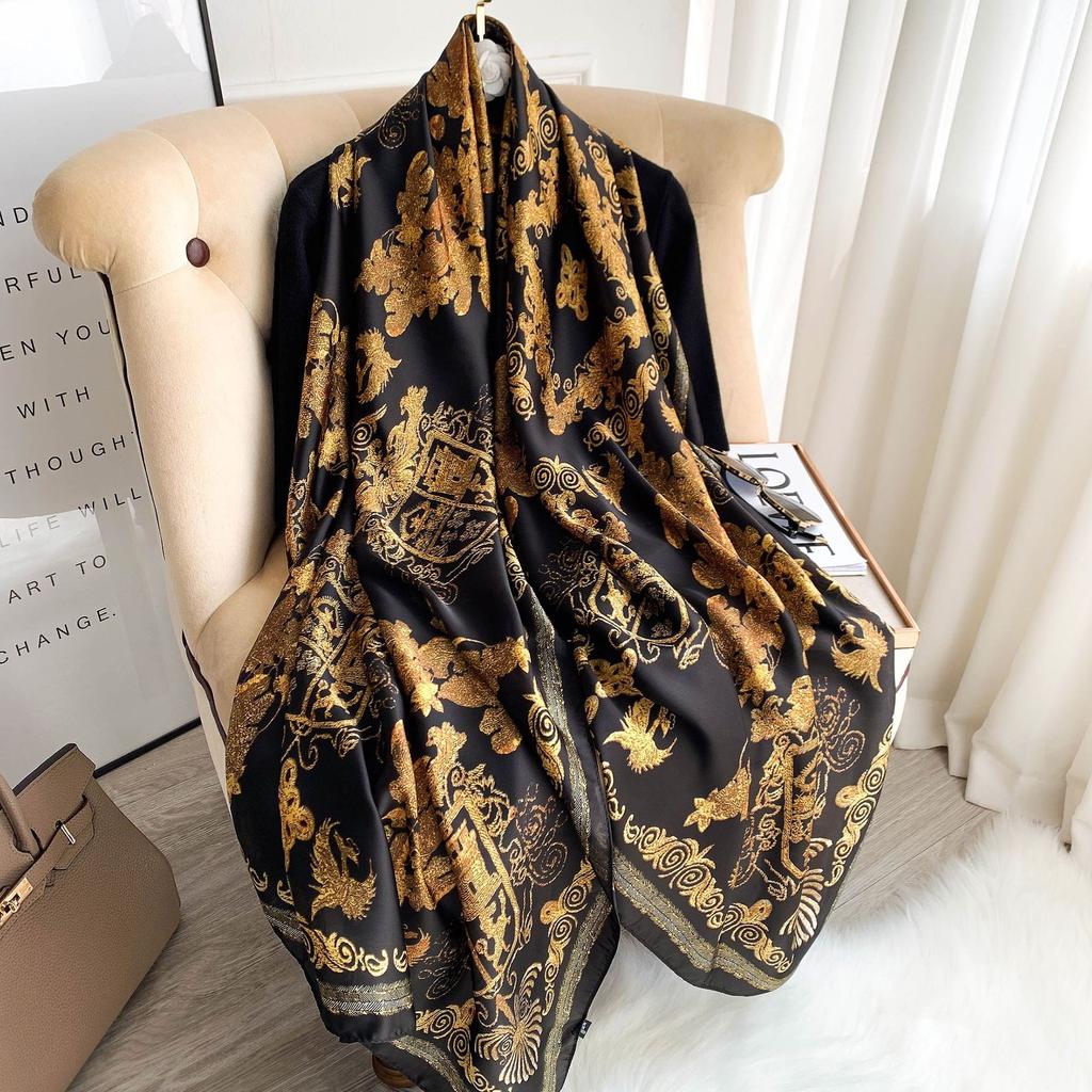 Женский шелковый зимний шарф, роскошный дизайнерский принт, женские пляжные шали, шарфы, модный гладкий платок, женский хиджаб