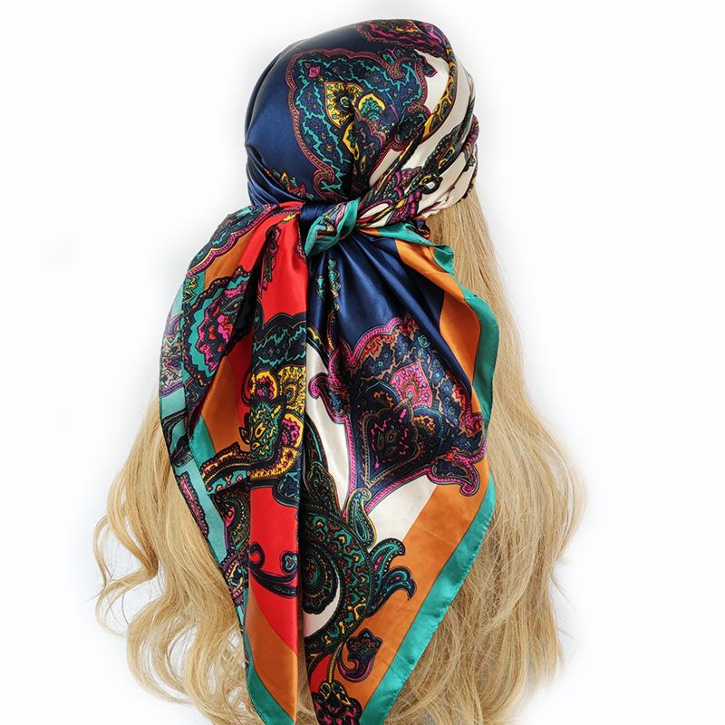 Дизайнерский шелковый квадратный шарф для женщин, маленький шейный платок, модный принт, фуляр, повязка для волос, атласный головной платок